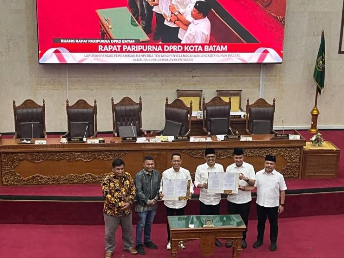 Batam -DPRD Kota Batam bersama Pemerintah Kota (Pemko) Batam resmi mengesahkan Rancangan Peraturan Daerah (Ranperda) tentang Penyelenggaraan Angkutan Massal Berbasis Jalan menjadi Peraturan Daerah (Perda).