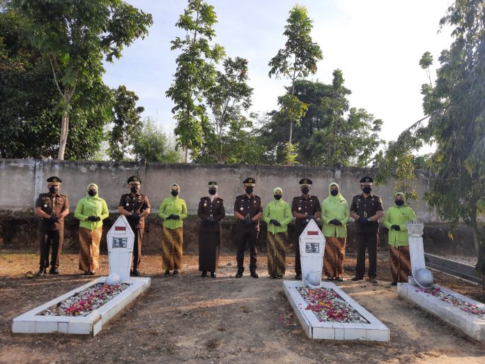 Pelalawan – Bahwa pada hari Rabu, tanggal 21 Juli 2021 sekira pukul 08.00 Wib bertempat di Tamanl Makam Pahlawan Setia Negara, Jl. Abdul Jalil, llKel. Pangkalan Kerinci Barat, Kec. Pangkalan Kerinci, Kab. Pelalawan, Seluruh Pegawai pada Kejaksaan Negeri Pelalawan yang dipimpin oleh Kepala Kejaksaan Negeri Pelalawan Ibu Silpia Rosalina, S.H., M.H selaku Pimpinan Rombongan telah melaksanakan Kegiatan Ziarah di Taman Makam Pahlawan Dalam Rangka Memperingati Hari Bhakti Adhyaksa ke-61 dan Hari Ikatan Adhyaksa Dharmakarini Ke-21 Tahun 2021. Kegiatan ziarah tersebut diawali dengan penghormatan umum kepada Arwah Para Pahlawan yang dipimpin oleh Kepala Kejaksaan Negeri Pelalawan, selanjutnya para peserta mengheningkan cipta dan dilanjutkan peletakan karangan bunga serta penaburan bunga oleh Kepala Kejaksaan Negeri Pelalawan, Ketua IAD Kejaksaan Negeri Pelalawan, Para Kasi dan Kasubagbin Kejaksaan Negeri Pelalawan, diikuti oleh Seluruh Pegawai Kejaksaan Negeri Pelalawan. Bahwa kegiatan ziarah berakhir sekitar pukul 09.30 Wib, berakhir dengan tertib dan lancar dengan tetap menerapkan protkes yg ketat.