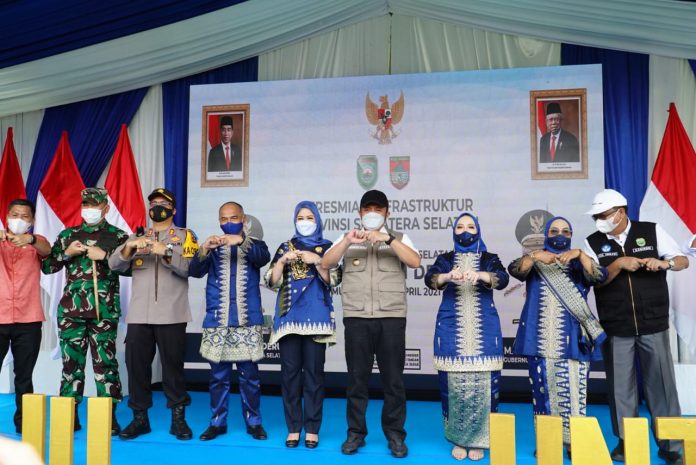 Pembangunan infrastruktur ini merupakan kewenangan Pemprov Sumsel yang anggarannya berasal dari APBD dan Bantuan Gubernur bersifat khusus di Tugu Mulyo, Selasa (20/4/2021